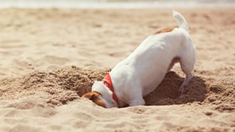 Everything you need to know about the dangers of sand ingestion and how to prevent your dog from eating sand.
